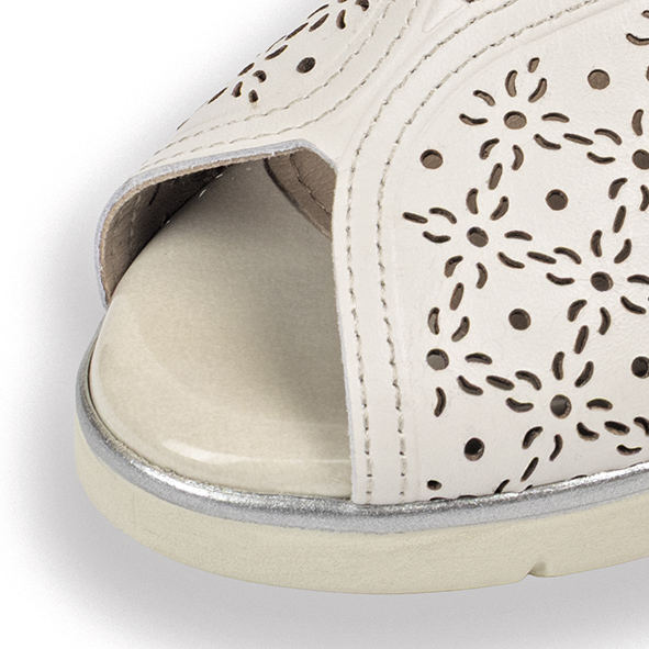 Sandalia tipo salón en piel de Pitillos con cuña, estampado picado ideal para el verano y con el talón sujeto. Material: PIEL