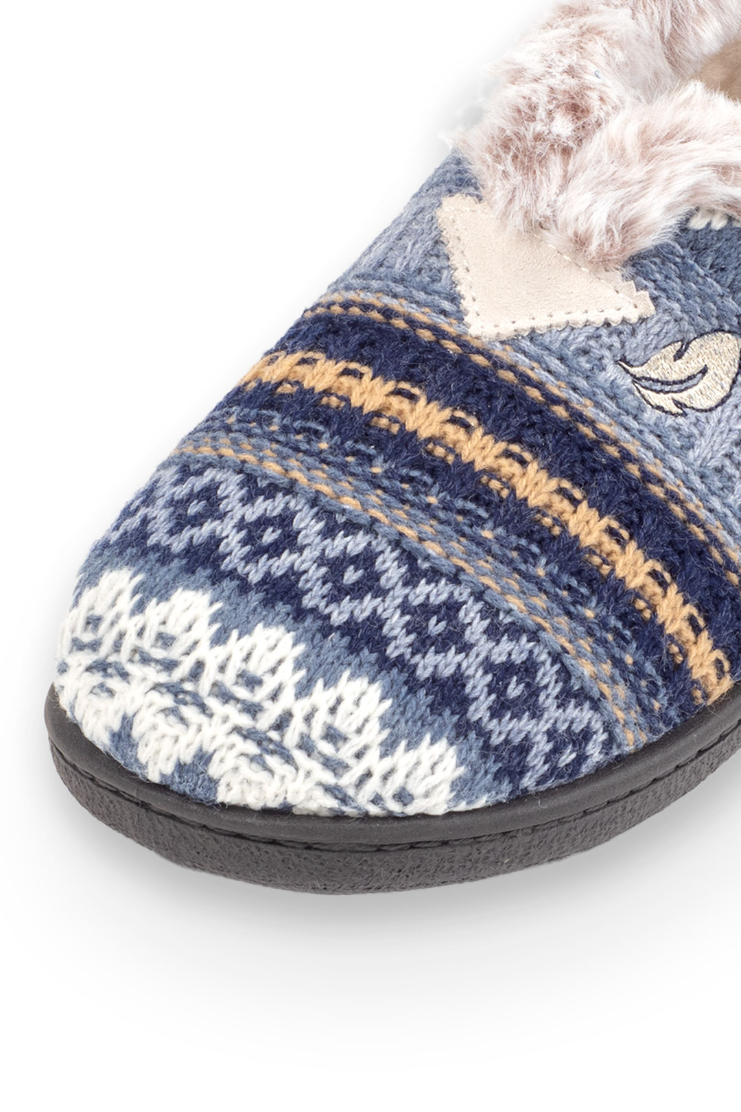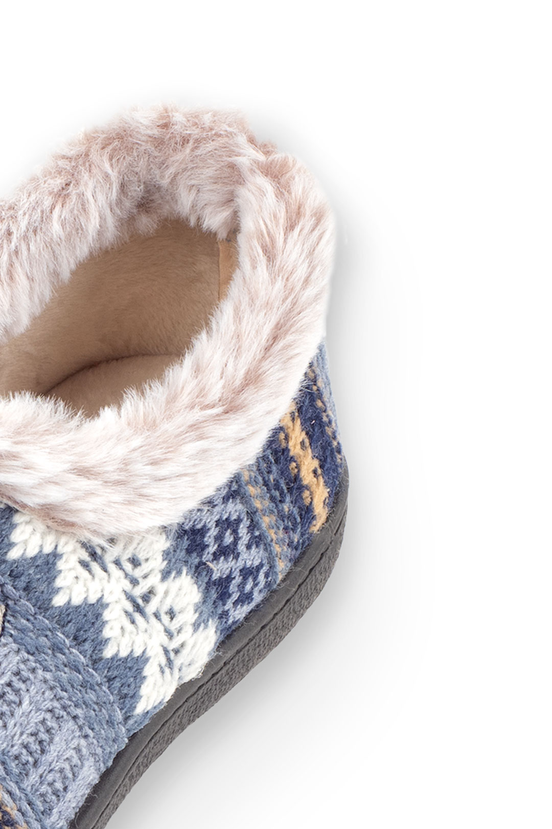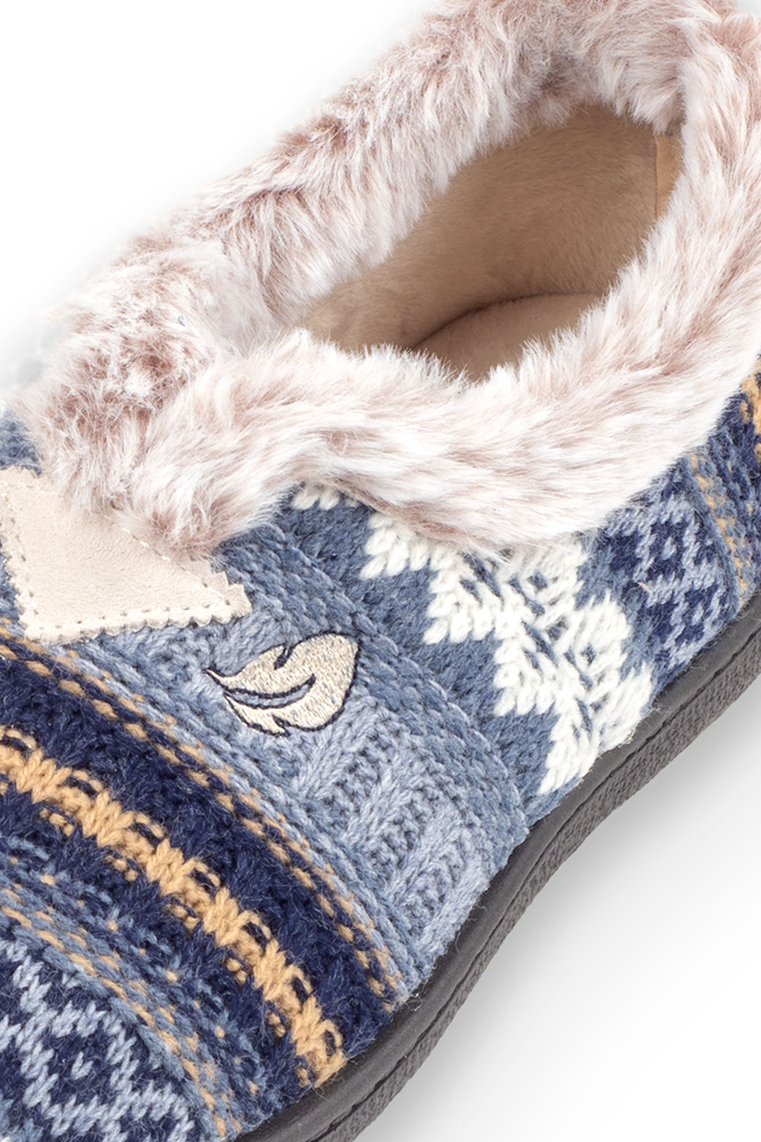 Zapatilla cerrada para estar por casa estampada de lana, corte en la pala para mayor ajuste al pie y llana. Material: Lana