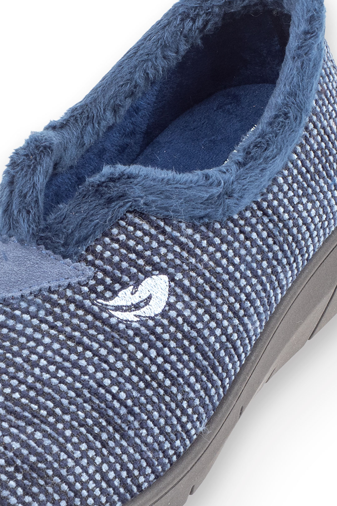 Zapatilla cerrada de estar por casa con cuña y corte en la pala para mayor comodidad. Con plantilla extraible confort de Plumaflex.