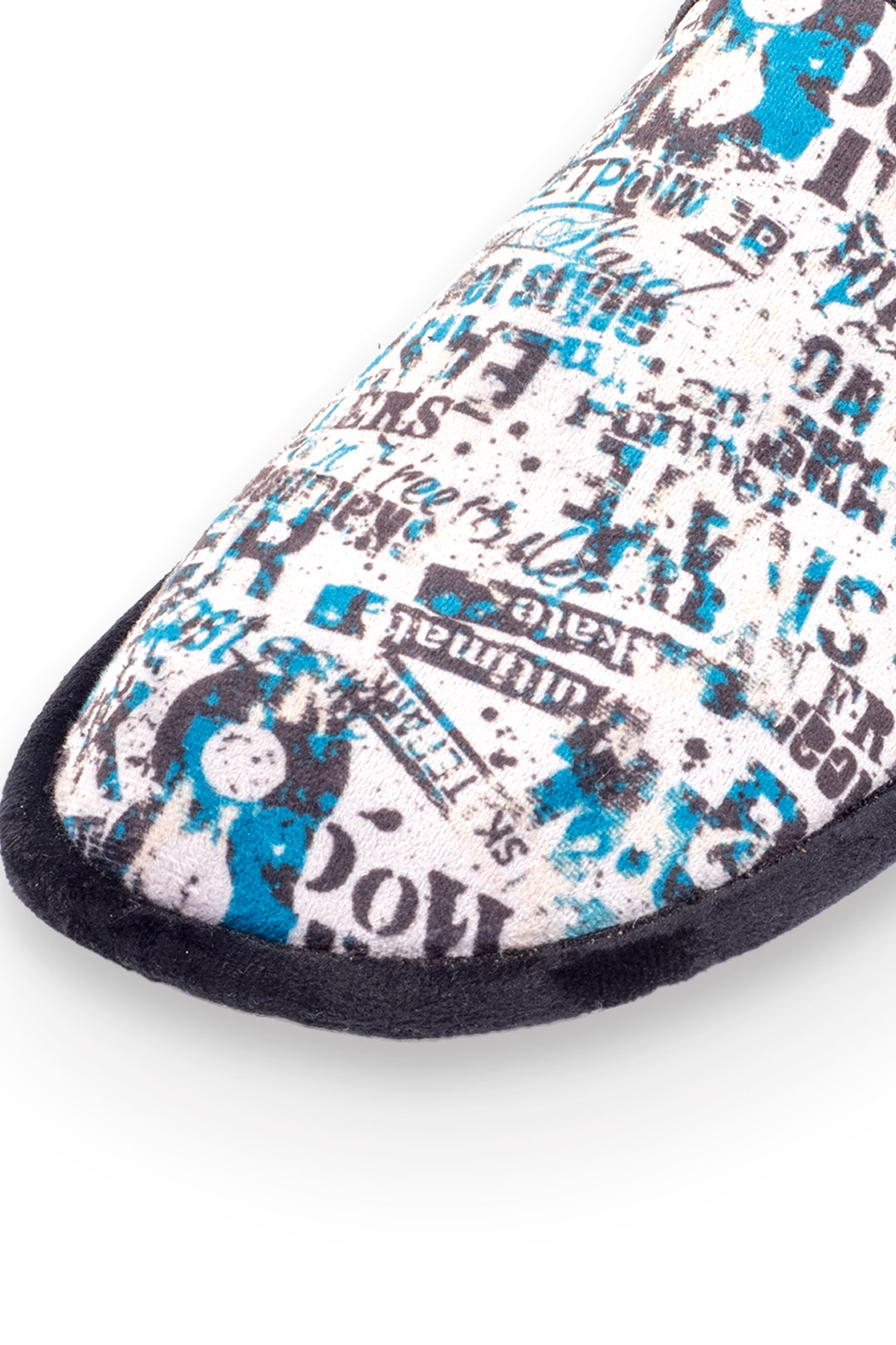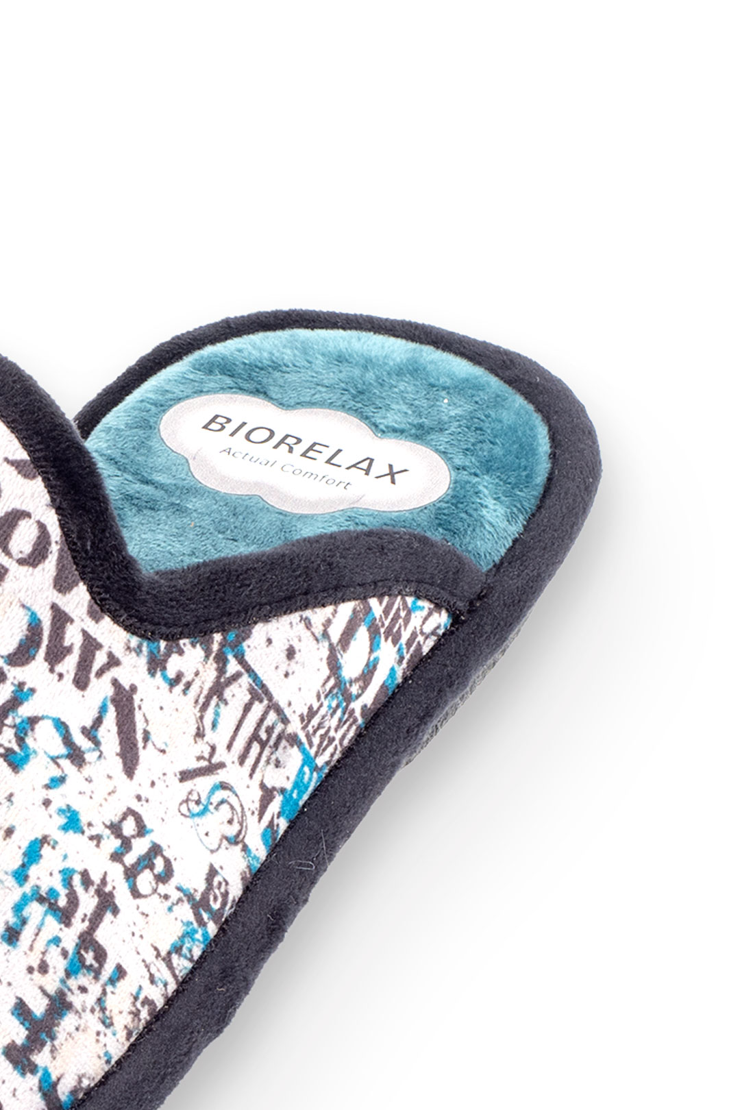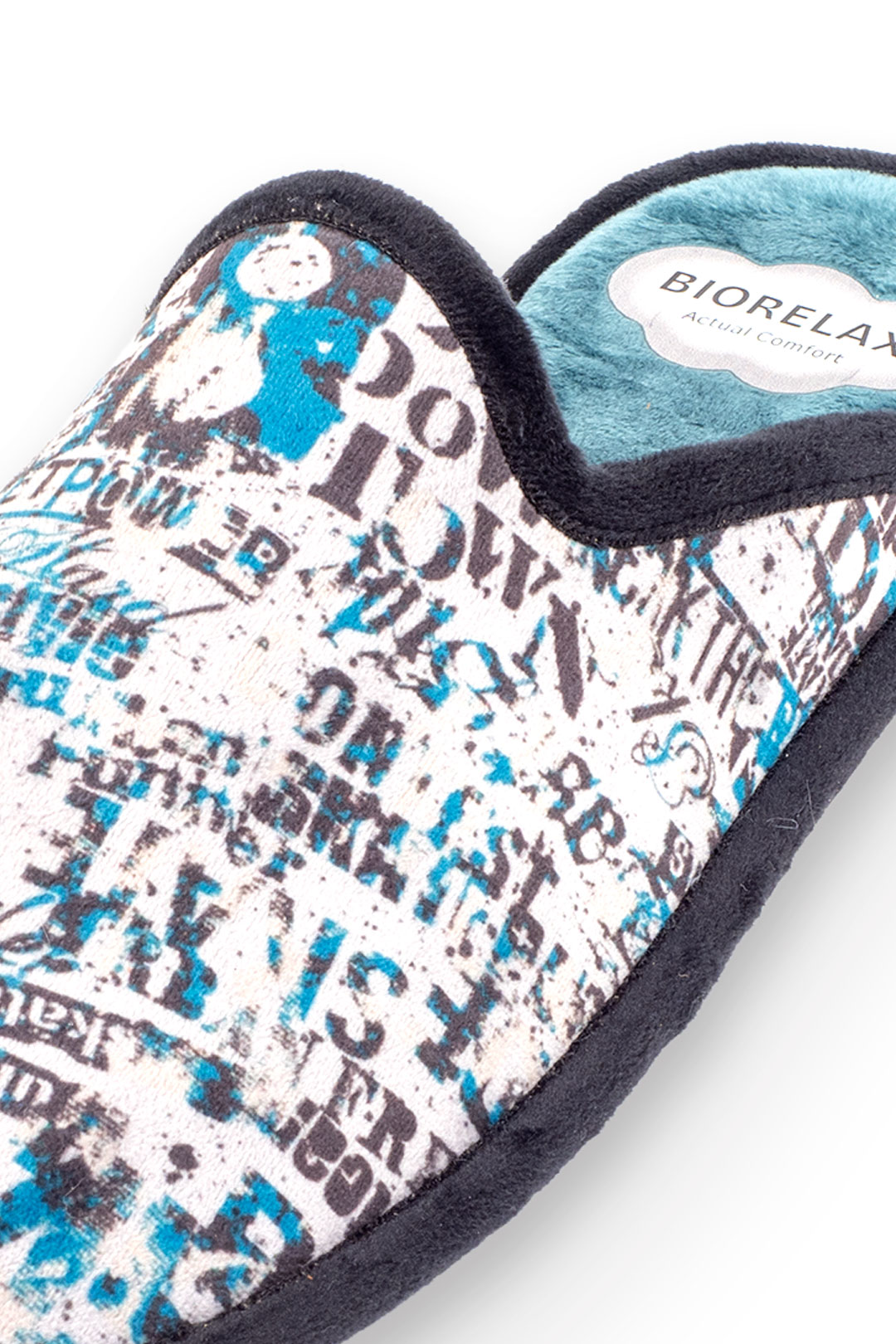 Zapatilla destalonada para estar por casa estampada con letras, con copete para más comodidad y plantilla confort de Bio relax.