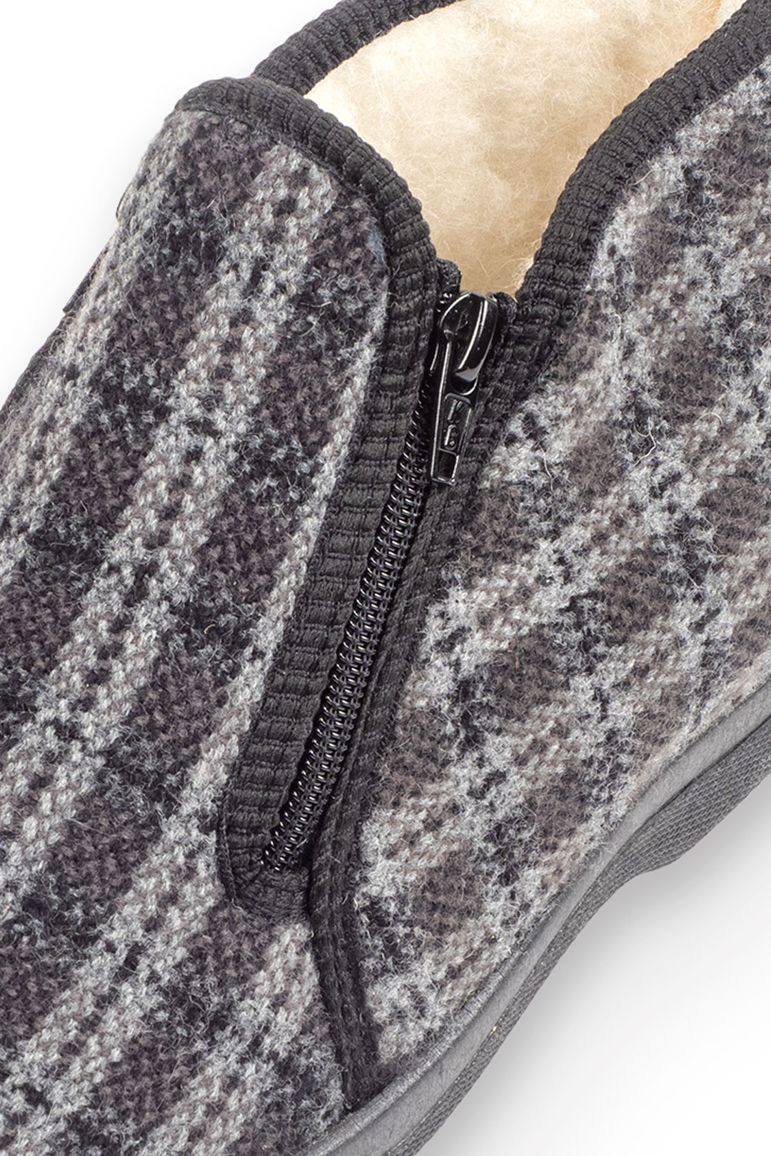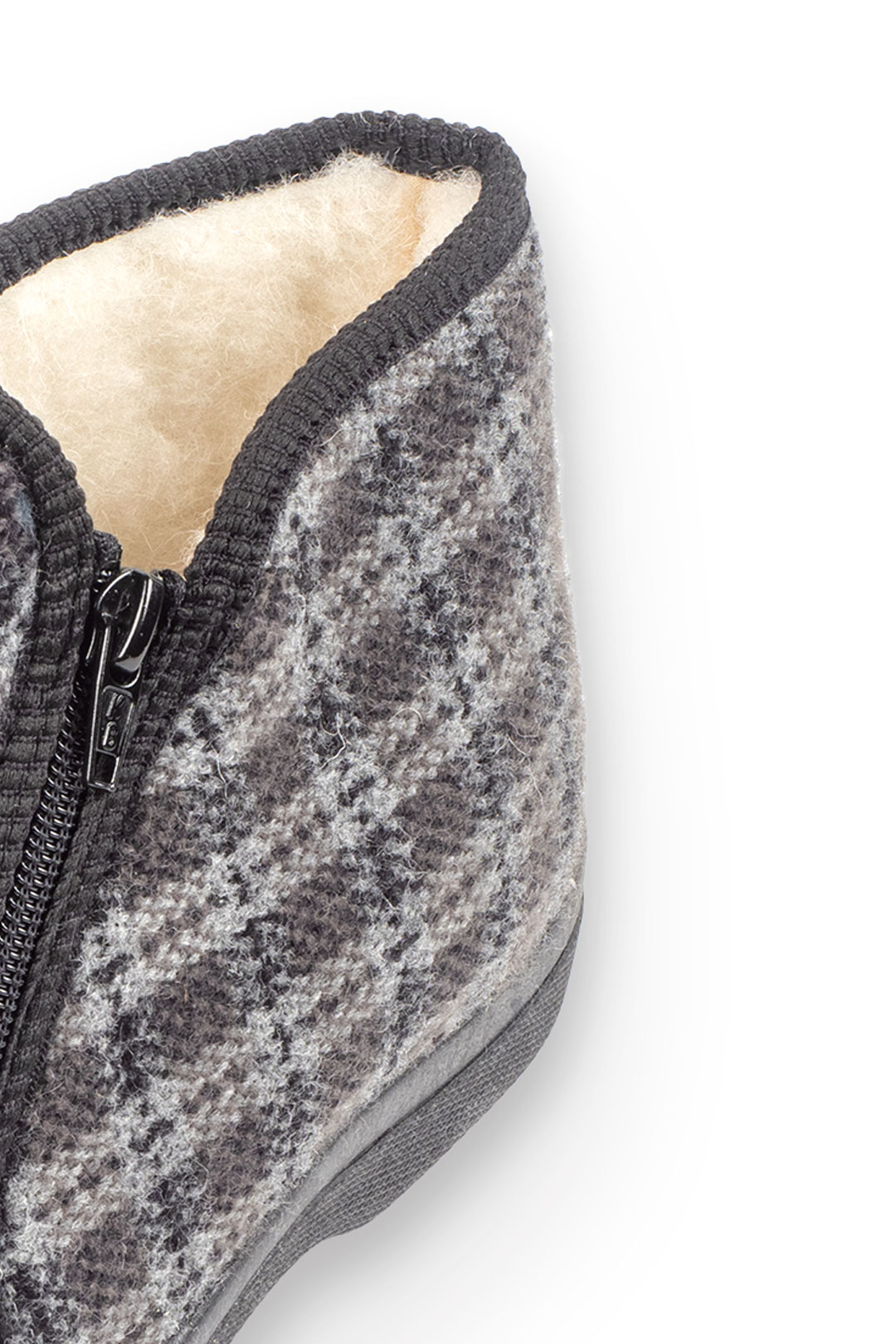 Botín para estar por casa con cremalleras y con su interior forrado con borreguito para las temporadas más frías.
