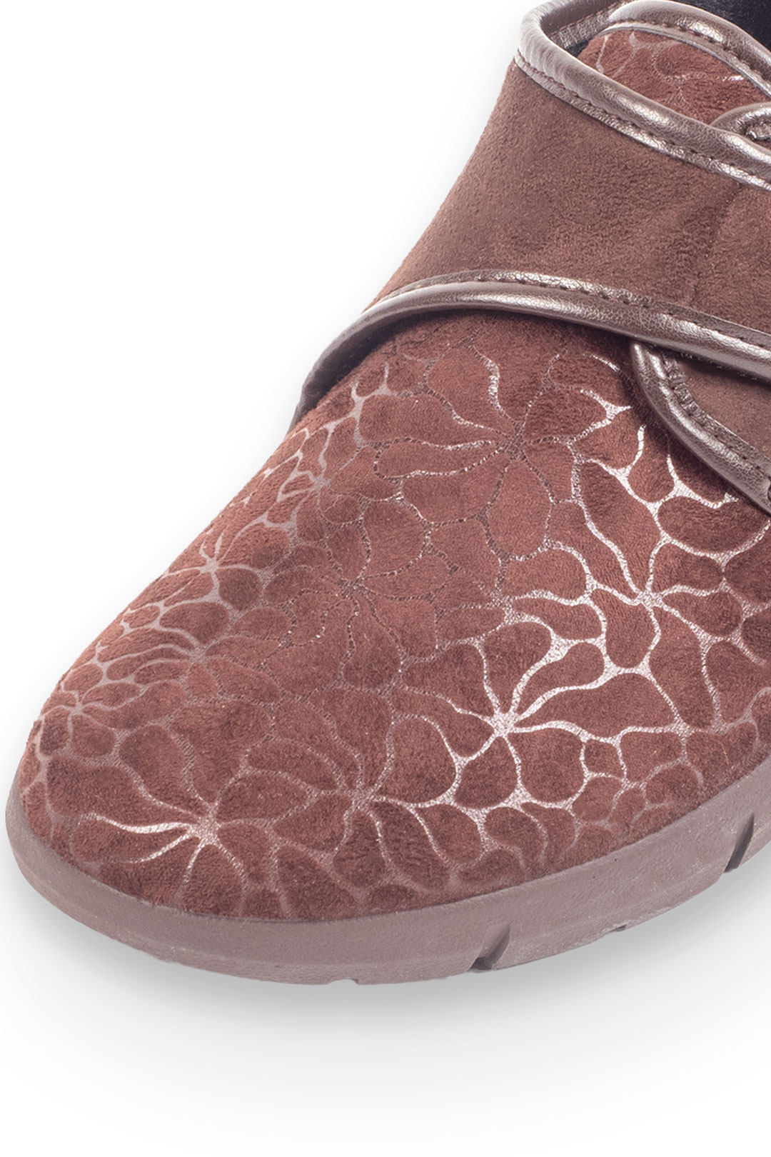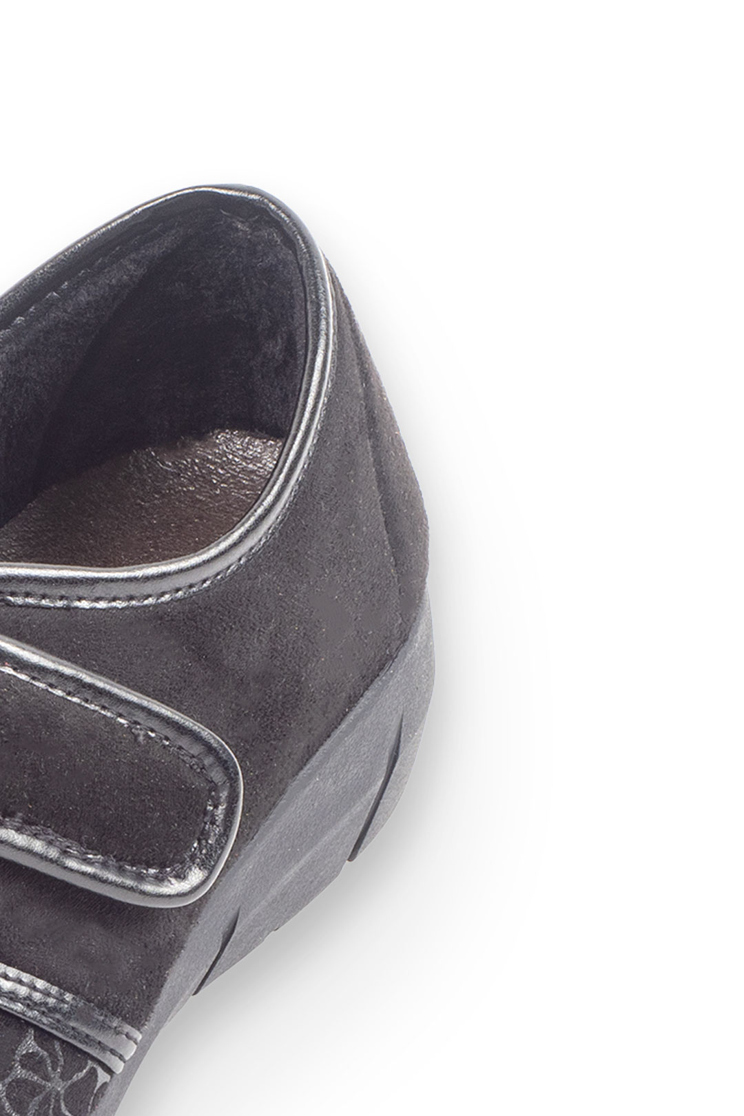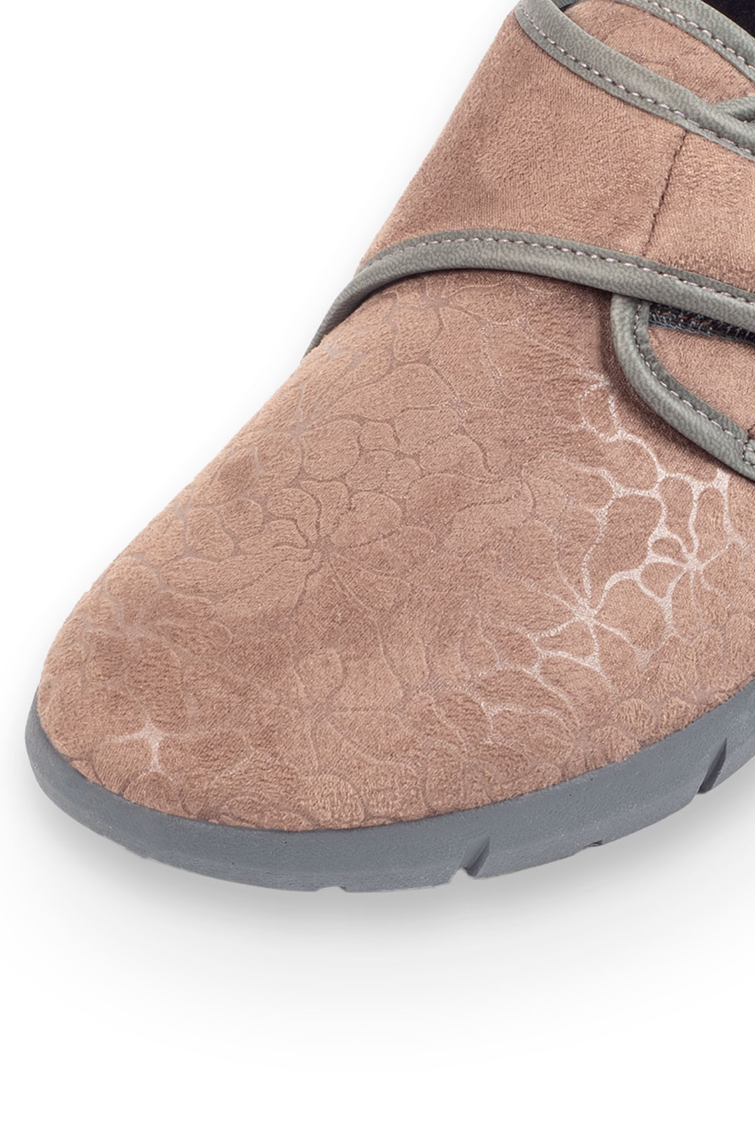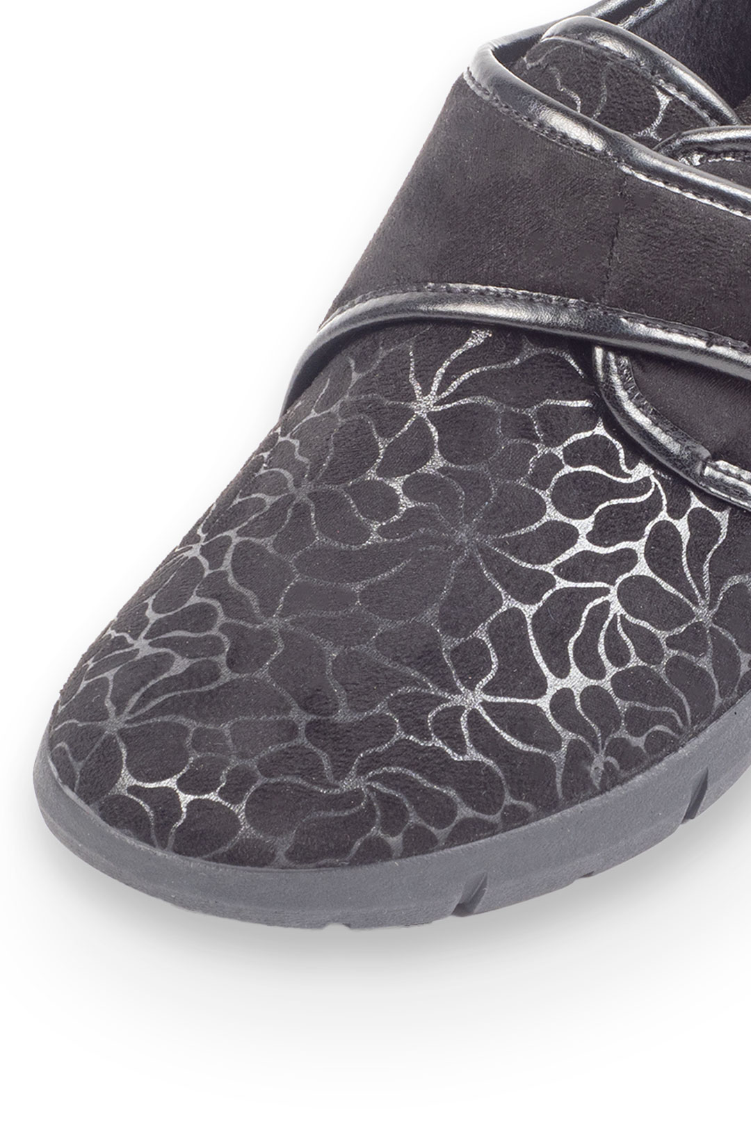 Zapatilla clásica estampada en varios colores con velcro y una ligera cuña para mayor comodidad.