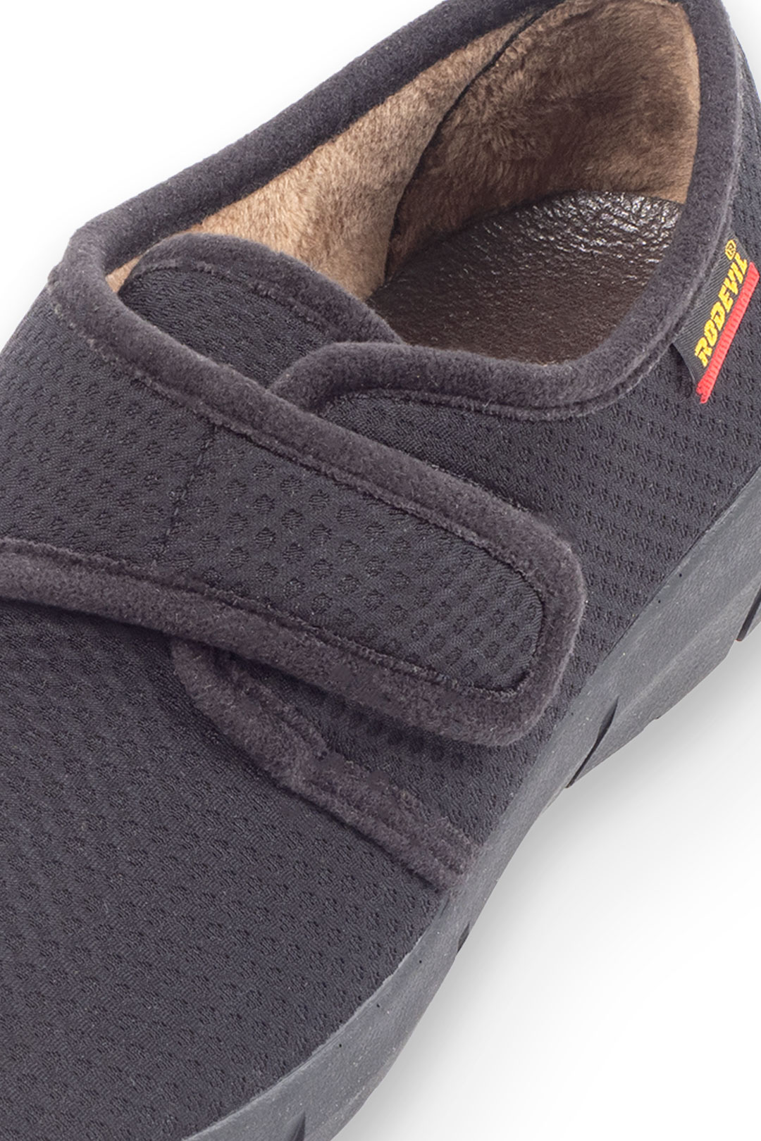 Zapatilla ideal para pies que requieren de calzado ancho, suave y cómodo. Hecho de licra para mayor comodidad y flexibilidad con velcro y cuña. Material: Licra