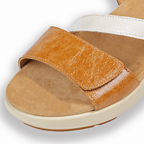 Sandalia en piel con dos velcros en la pala y uno en el tobillo para adaptarse mejor a todo tipo de pies y una mejor sujeción del pie.