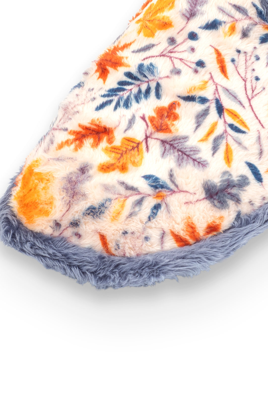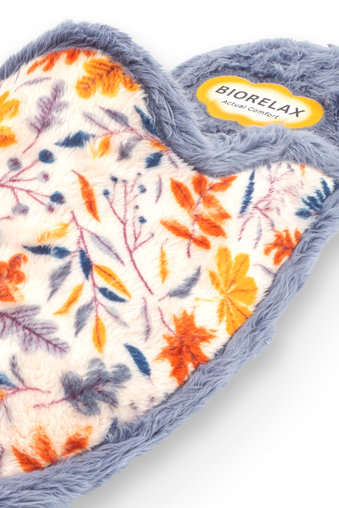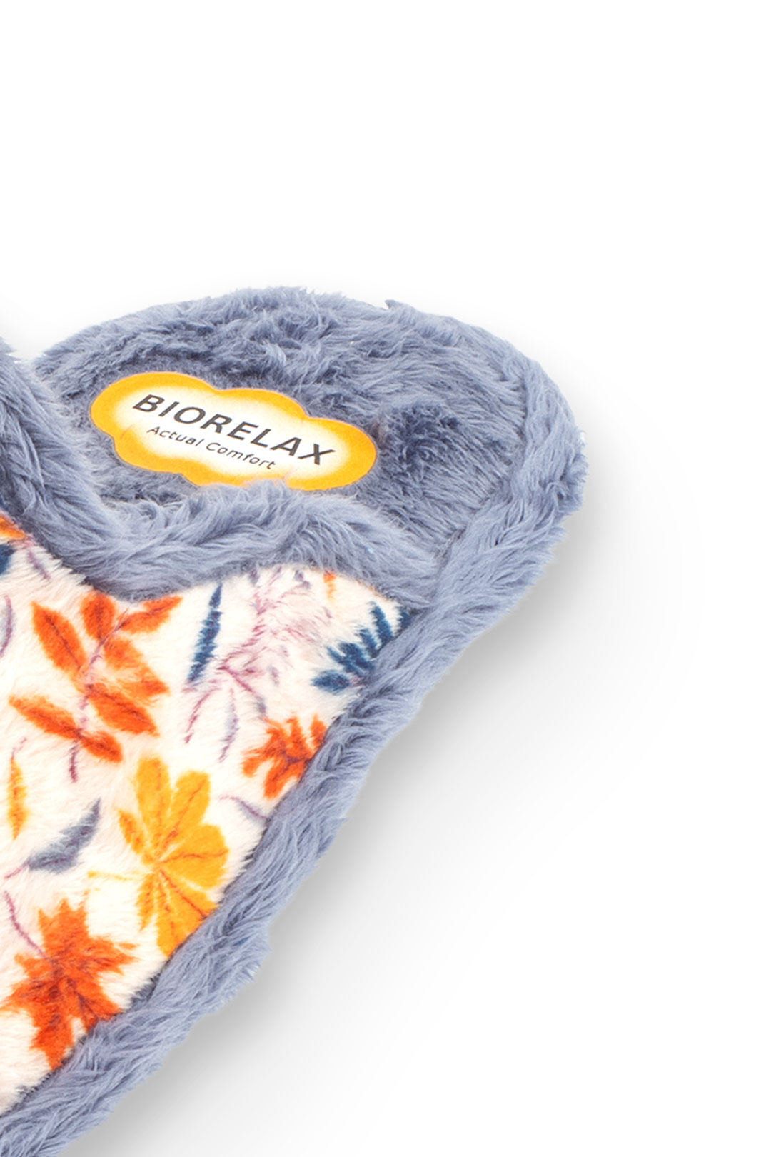 Zapatilla destalonada para estar por casa estampada con motivos otoñales, con copete para más comodidad y plantilla confort de Bio relax. Material: Tejido invierno