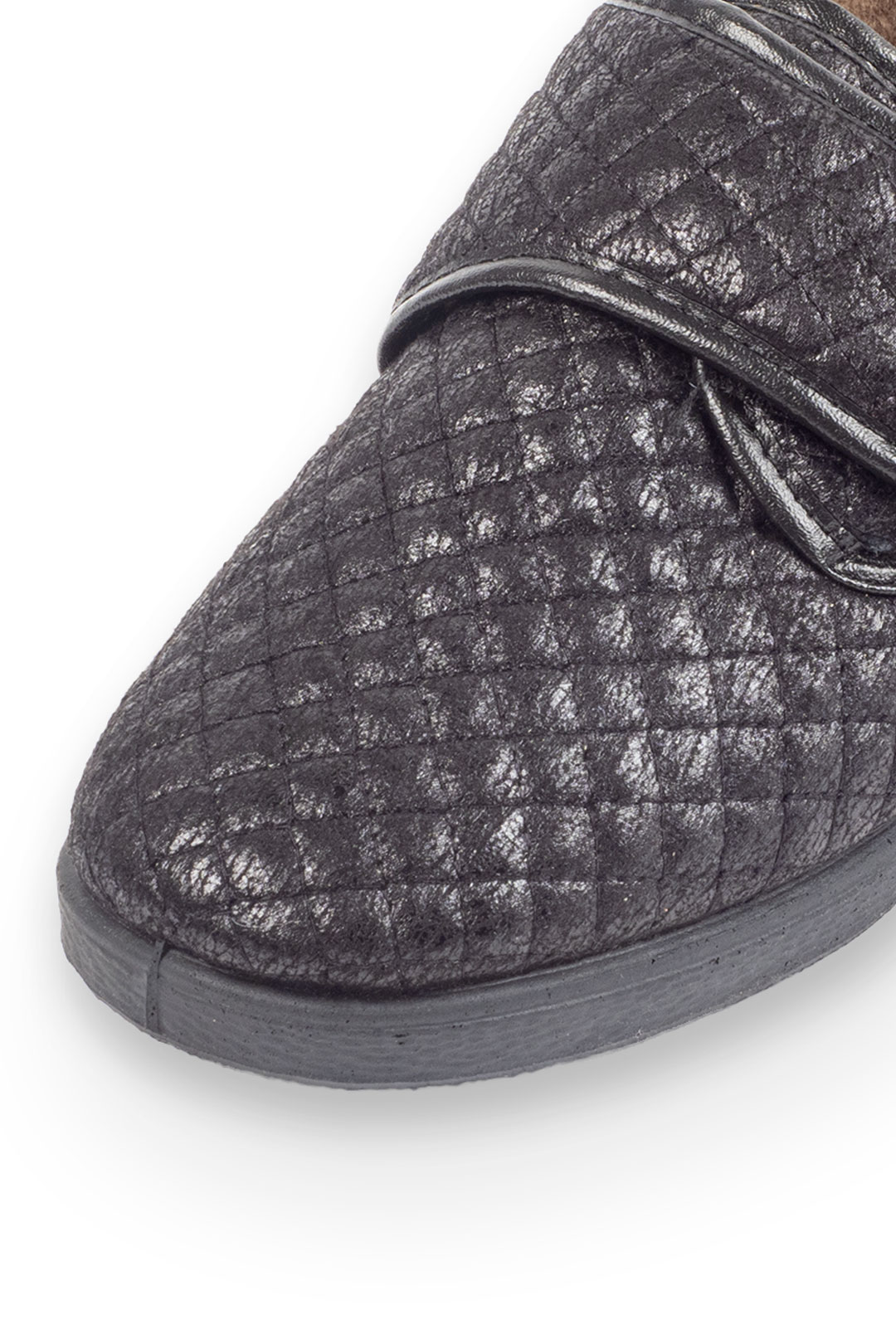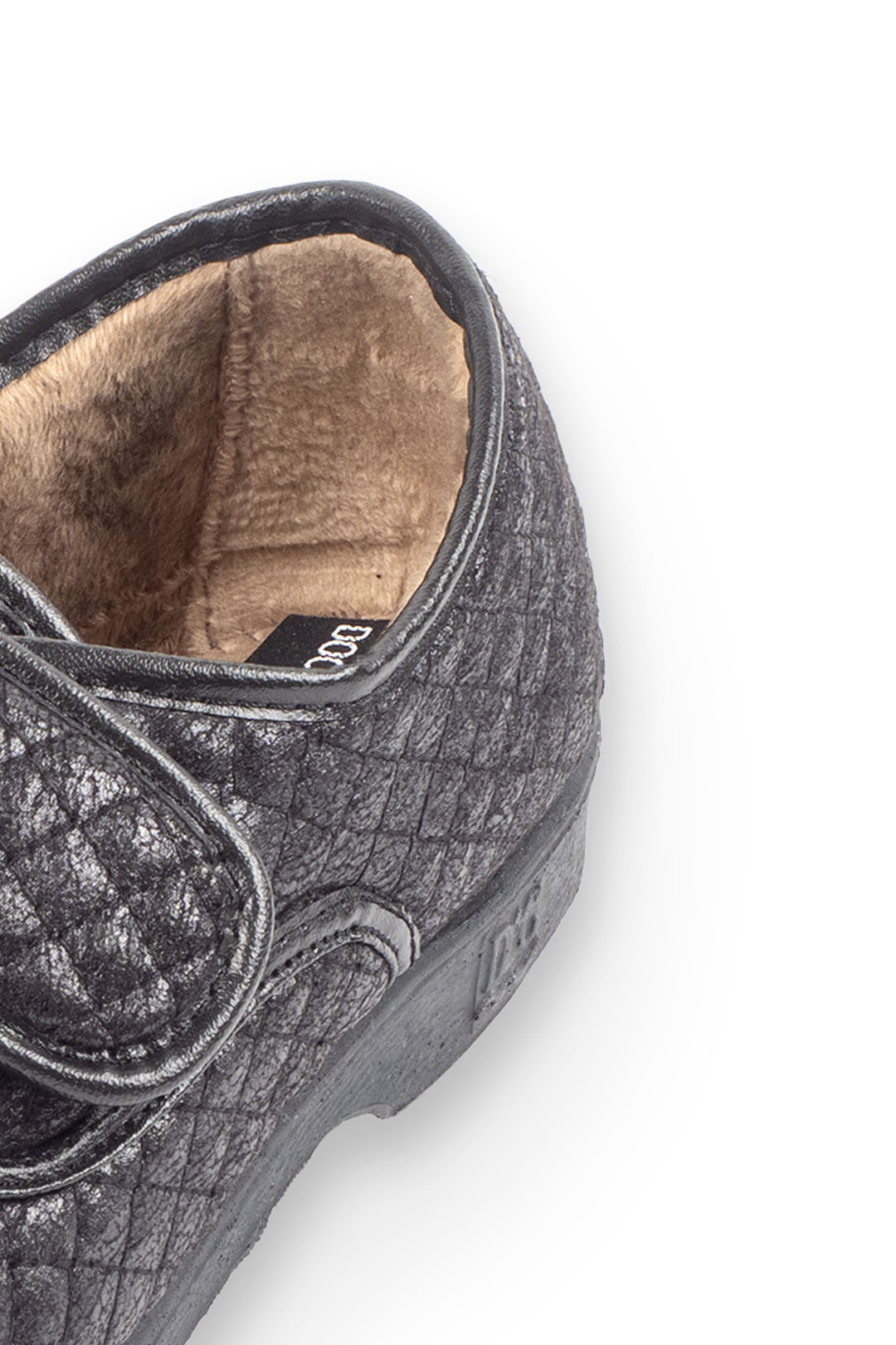 Zapatilla con velcro para máxima comodidad y llana. Material: Tejido gabardina