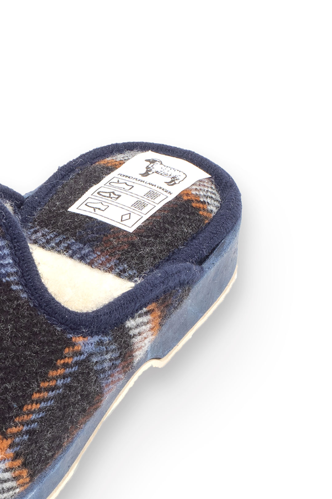 Zapatilla de estar por casa destalonada con copete y forrada por dentro con borreguito para las temporadas más frías. Material: Tejido invierno y borreguito