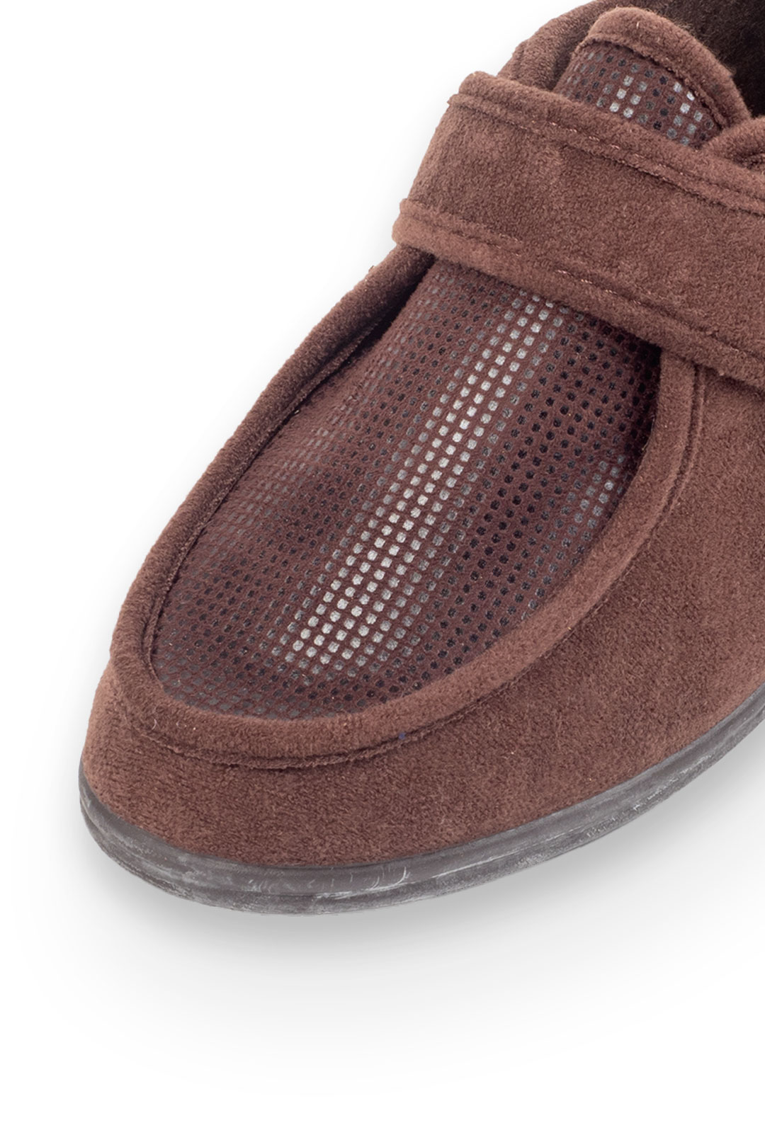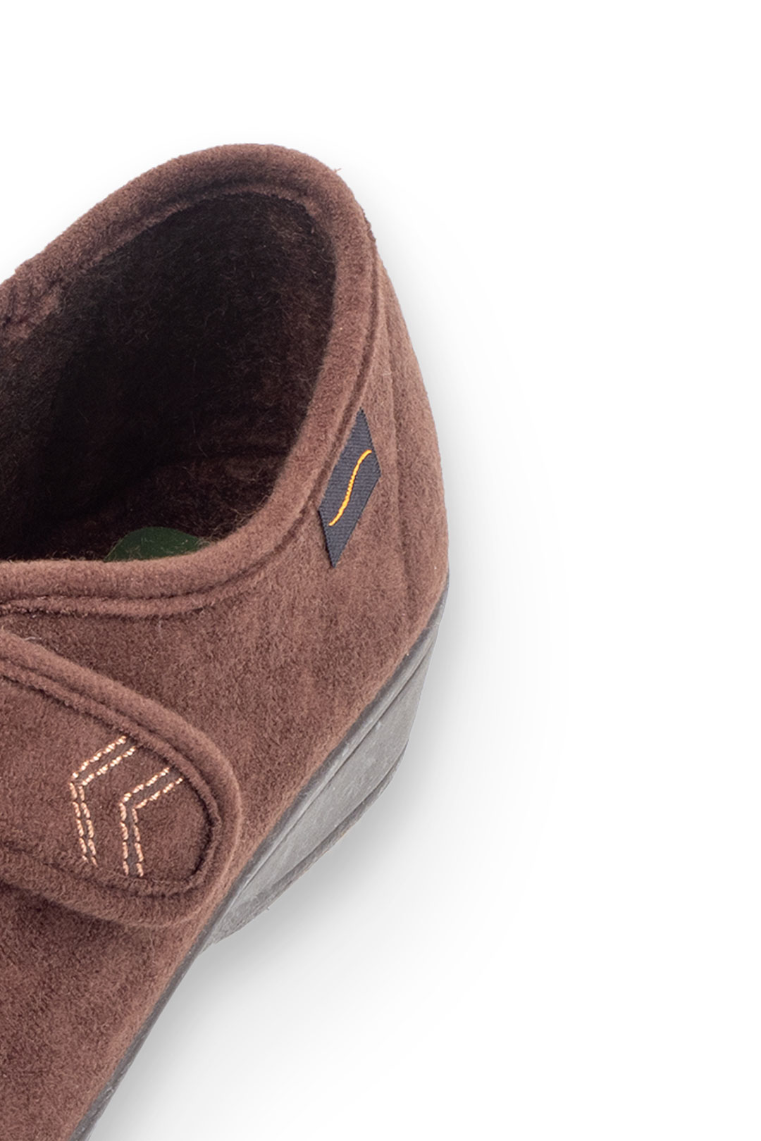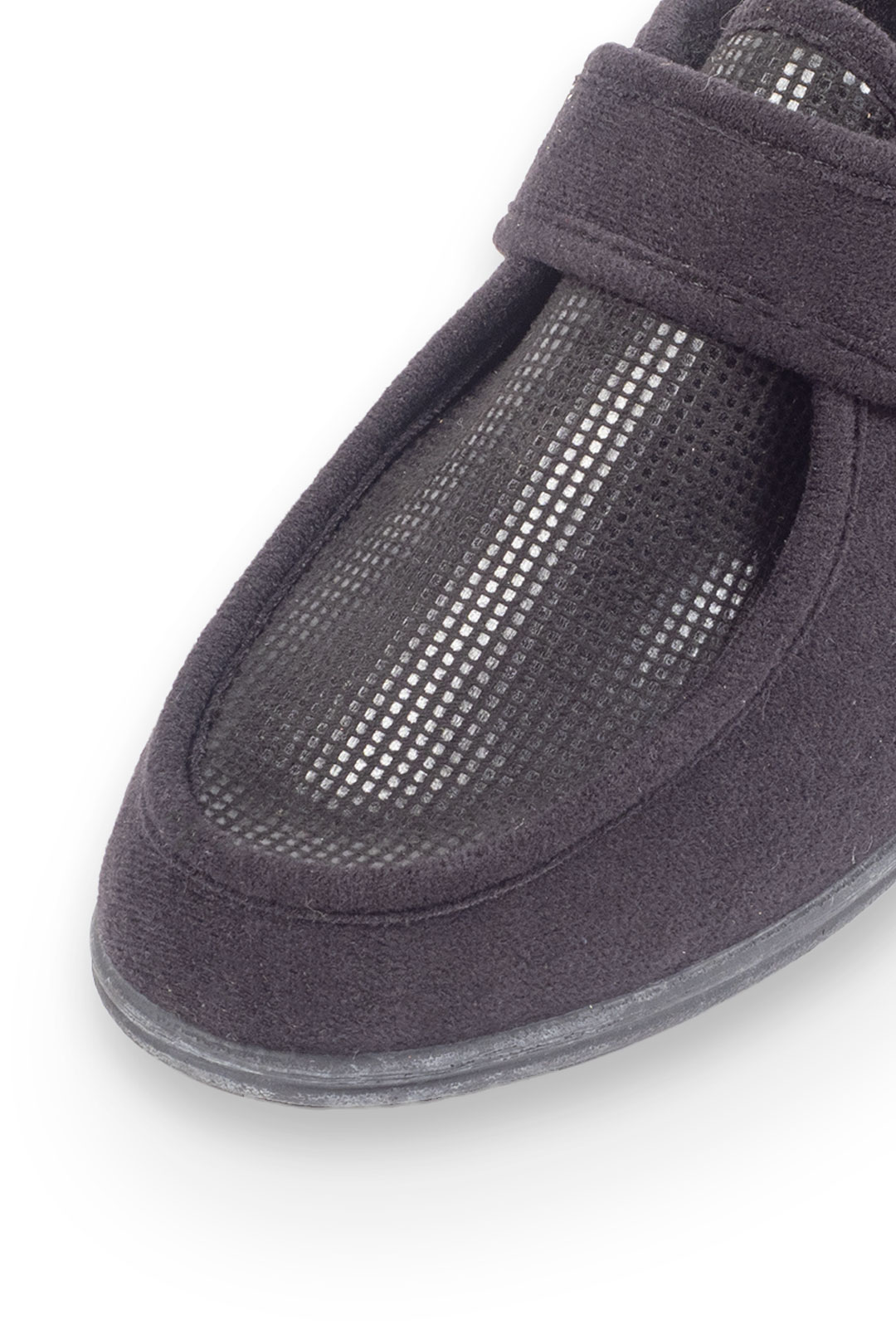 Zapatilla de señora con una ligera cuña, con la pala de licra para mayor confort y velcro para un mejor ajuste al pie