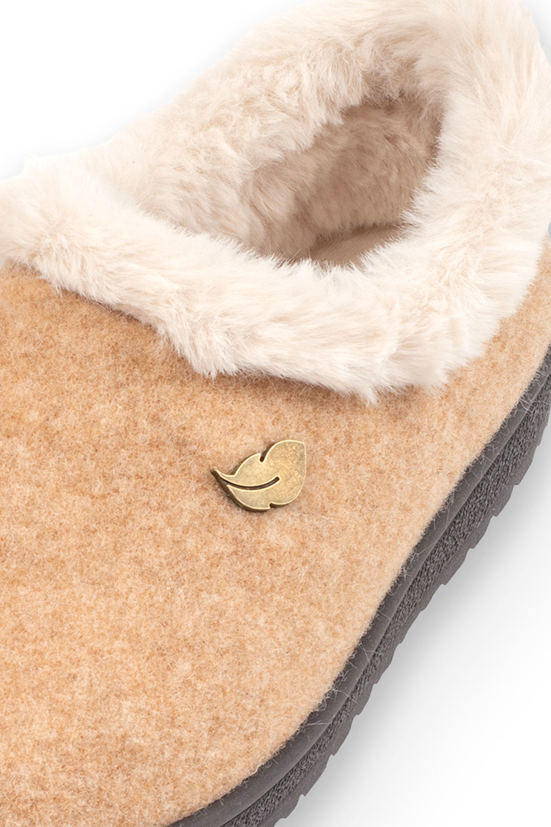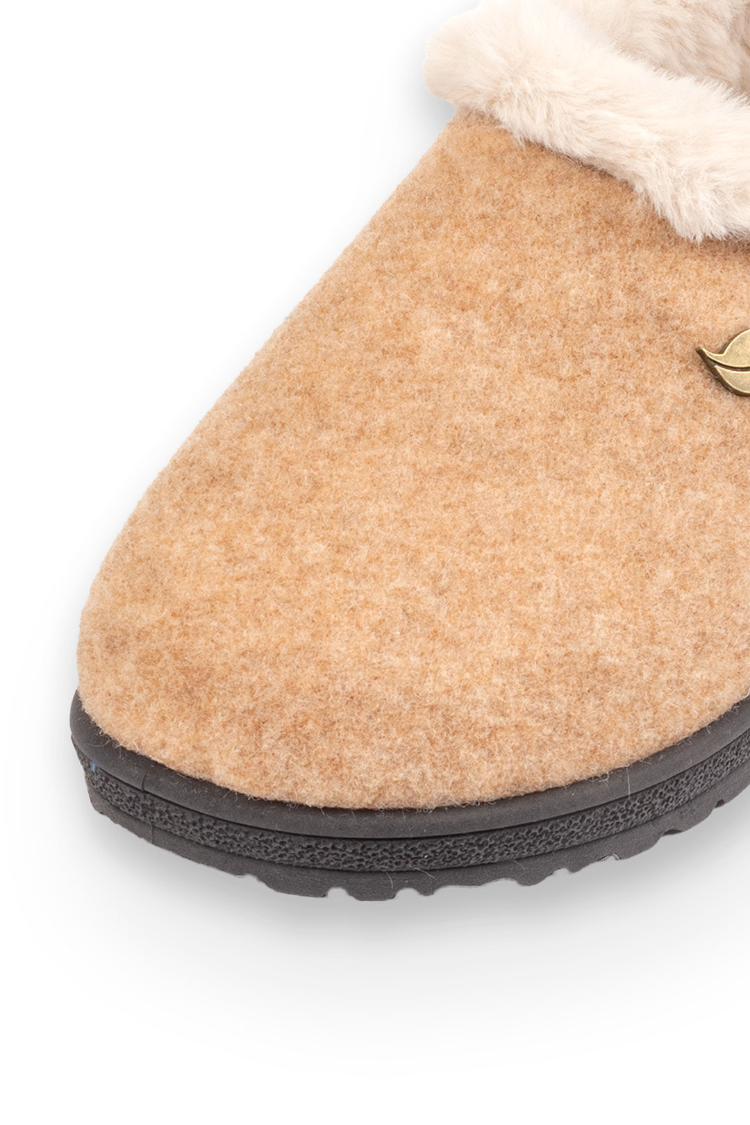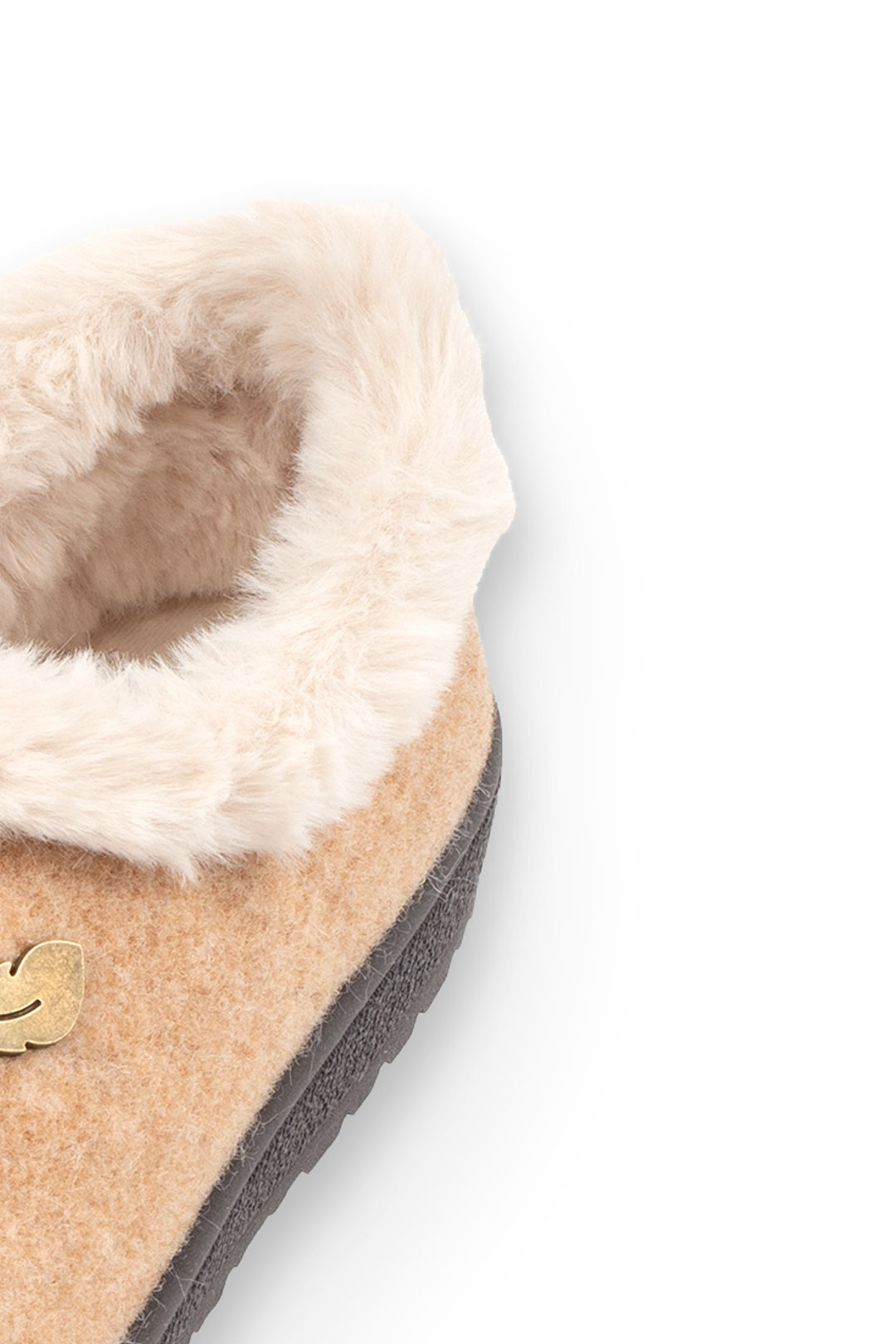 Zapatilla de estar por casa cerrada de fieltro y borreguito con horma ancha (respetuoso) y plantilla confort de Plumaflex para el descanso de pies y piernas.
