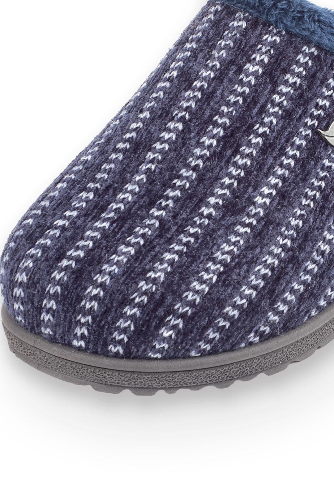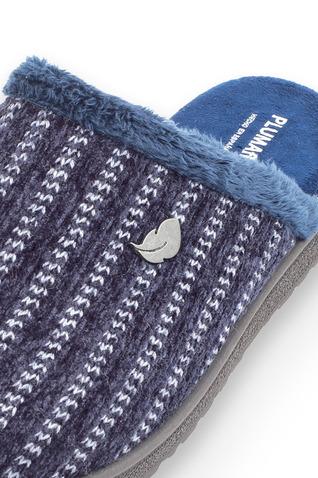 Zapatilla de estar por casa de lana destalonada con horma ancha (respetuoso) y plantilla confort de Plumaflex para el descanso de pies y piernas. Material: Lana