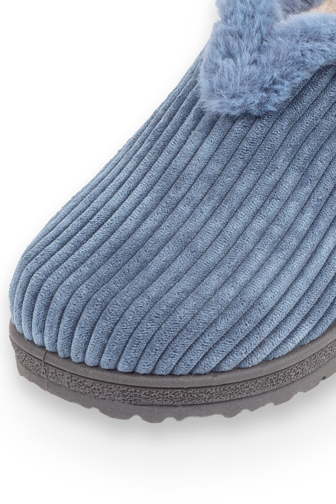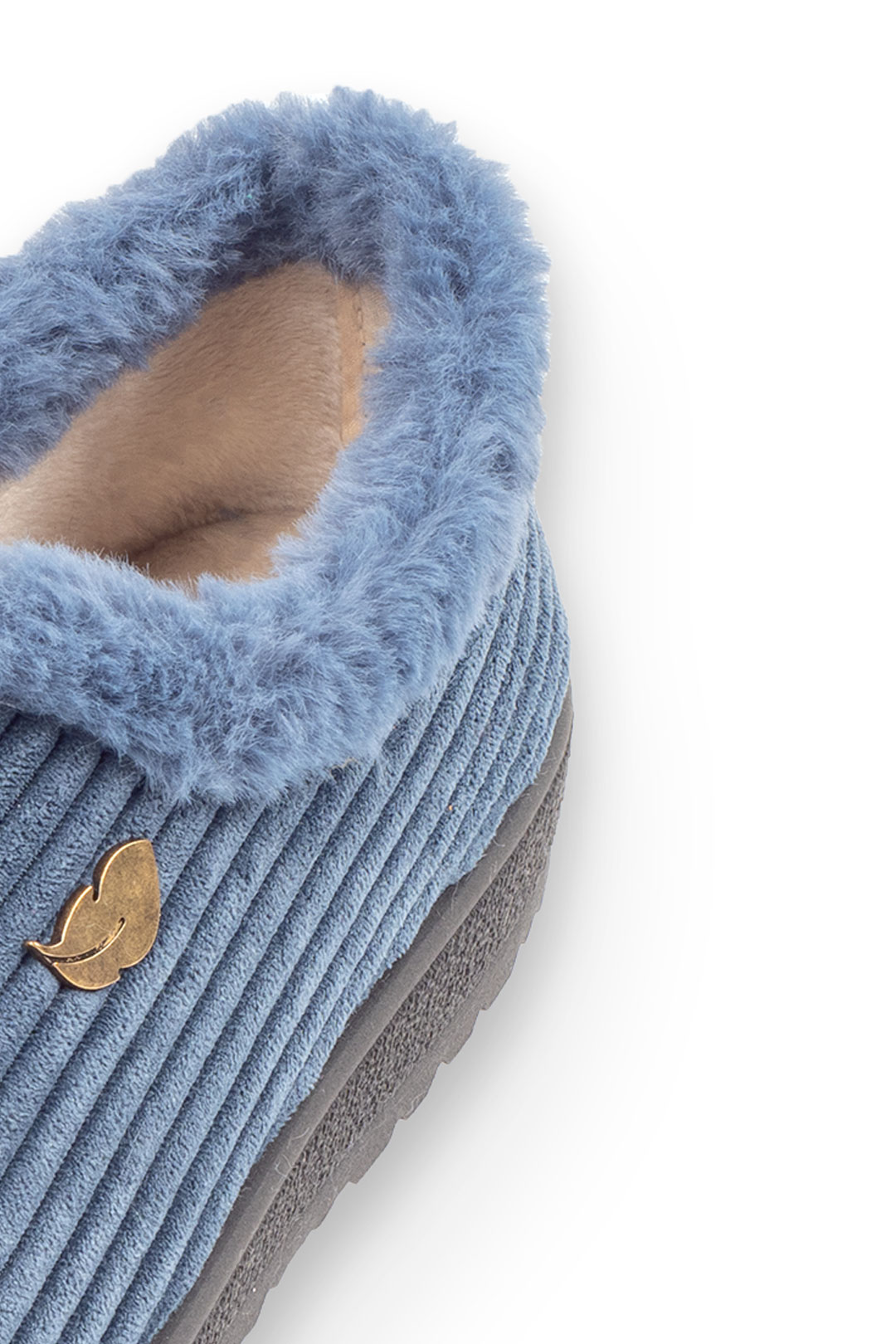 Zapatilla de estar por casa cerrada con horma ancha (respetuoso) y plantilla confort de Plumaflex para el descanso de pies y piernas. Material: Pana